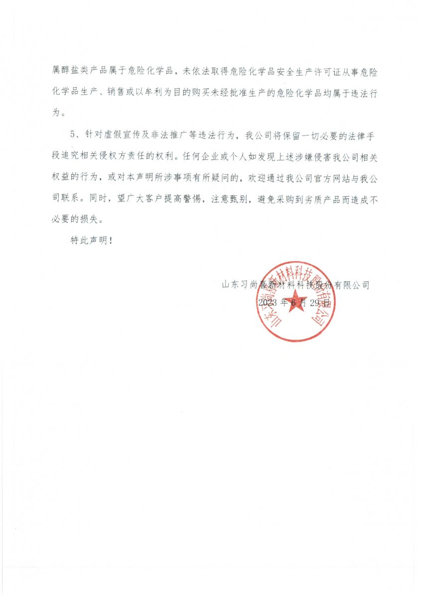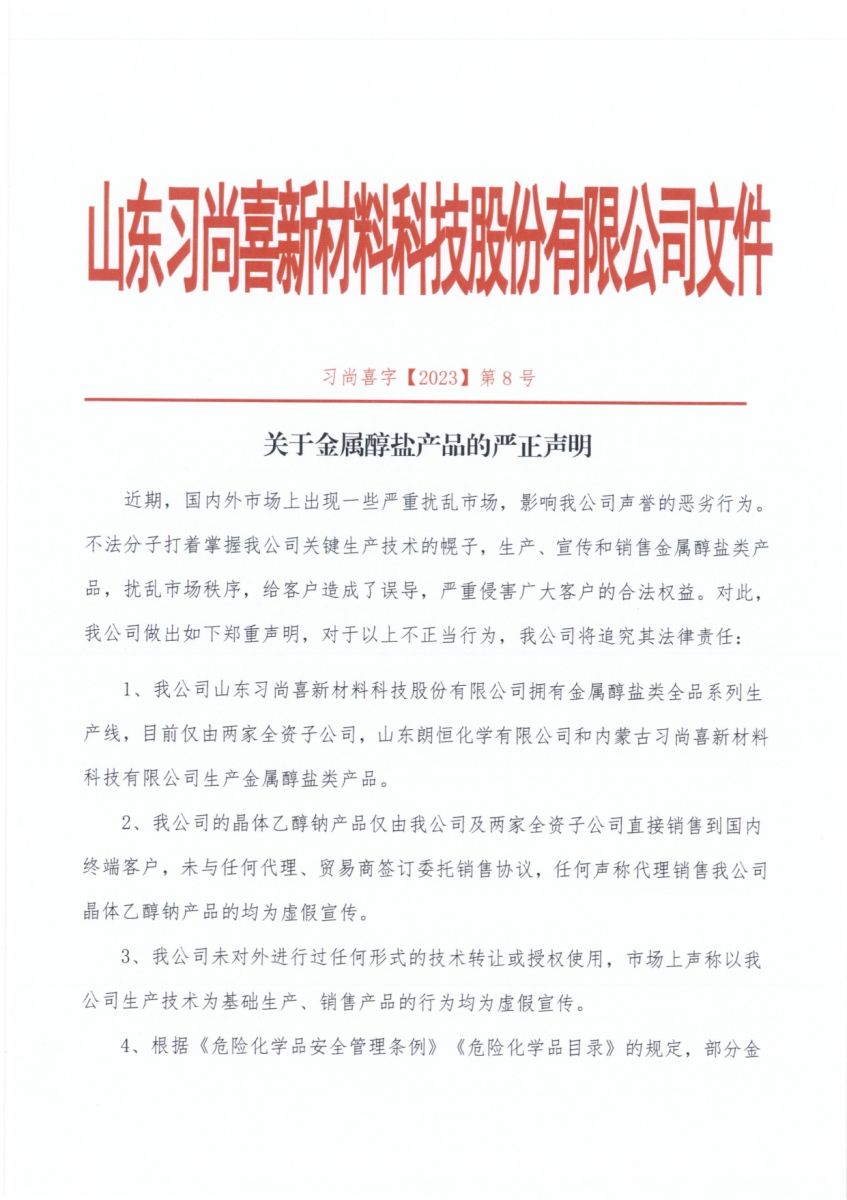 山東習(xí)尚喜關(guān)于金屬醇鹽產(chǎn)品的嚴(yán)正聲明